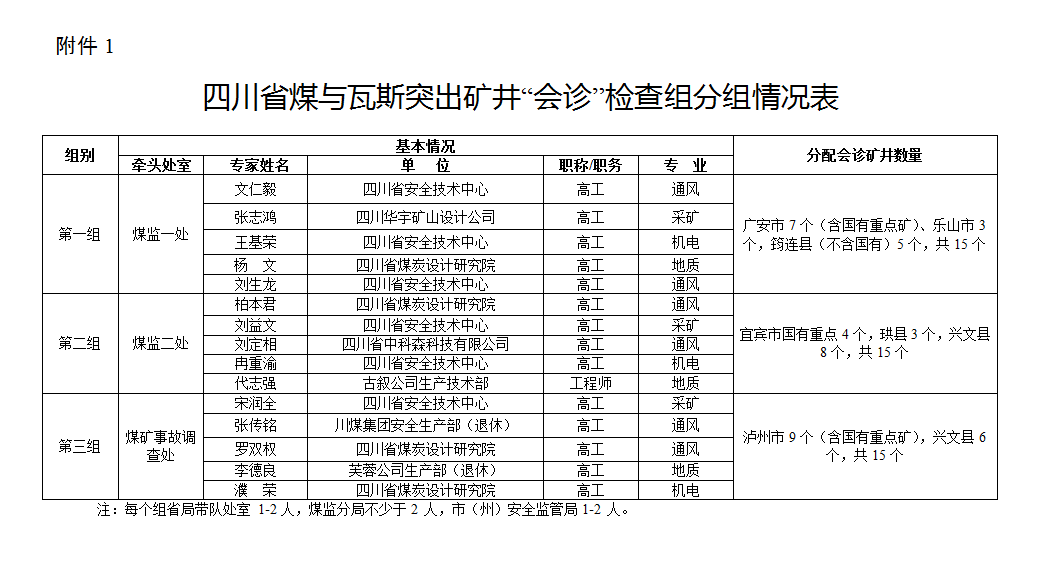 附件1: 四川省煤与瓦斯突出矿井“会诊”检查组分组情况表.docx 在线预览
