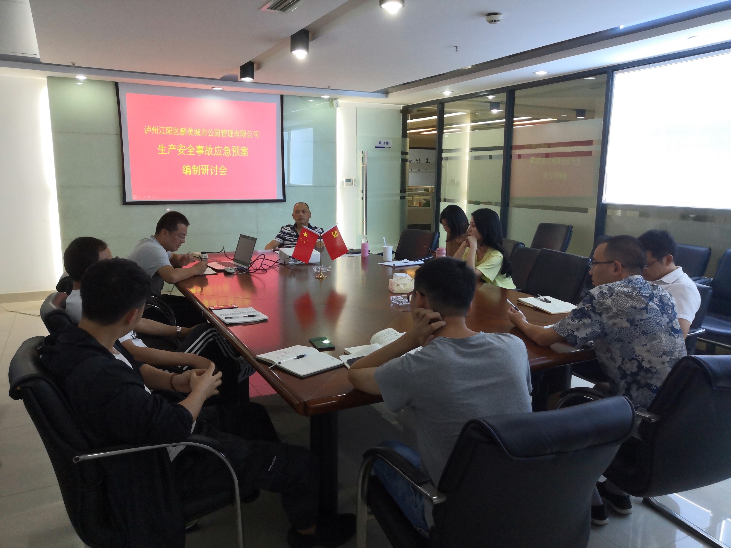 2019年7月20日,我公司组织召开了泸州江阳区醉美城市公园管理有限公司生产安全事故应急预案编制研讨会议,会议由项目负责人蒋李陵主持,公司负责人刘定相、技术副总唐贤君及、行政副总杨家永及各相关专业技术人员参加了会议。会上主要对泸州江阳区环卫现状进行了风险分析,对综合应急预案、专项应急预案、应急处置措施应涉及的风险、包括的内容等做了具体的讨论分析。